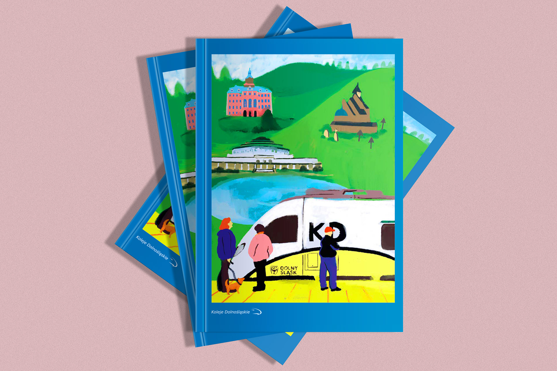 Back cover illustration and advertisment for Koleje Dolnośląskie